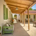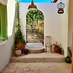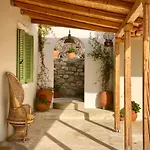 Eine Sonnenterrasse bietet zudem einen Ausblick auf den Innenhof. Die Badezimmer in der Villa in Likhas sind mit einer begehbaren Dusche und einer getrennten Toilette ausgestattet. Auch gibt es einen Haartrockner, Morgenmäntel und Badelaken für den Komfort der Gäste.